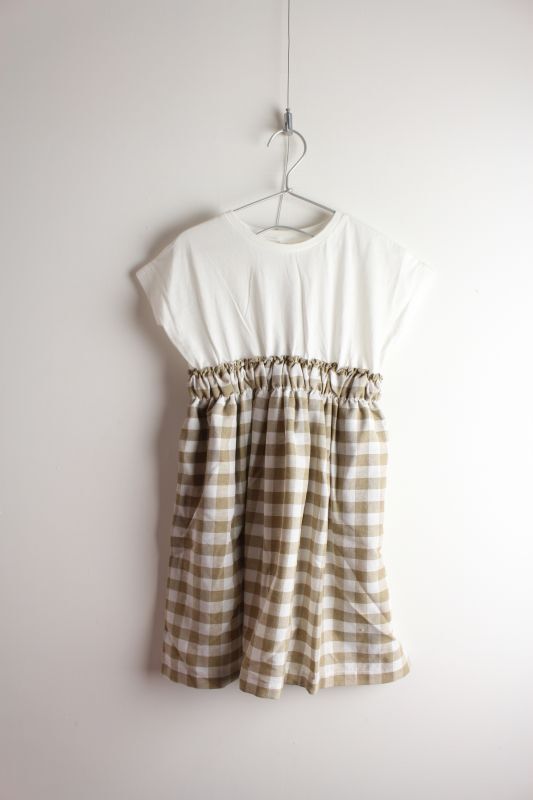 b.ROOM ギンガムチェックドッキングワンピース 03;オフホワイト