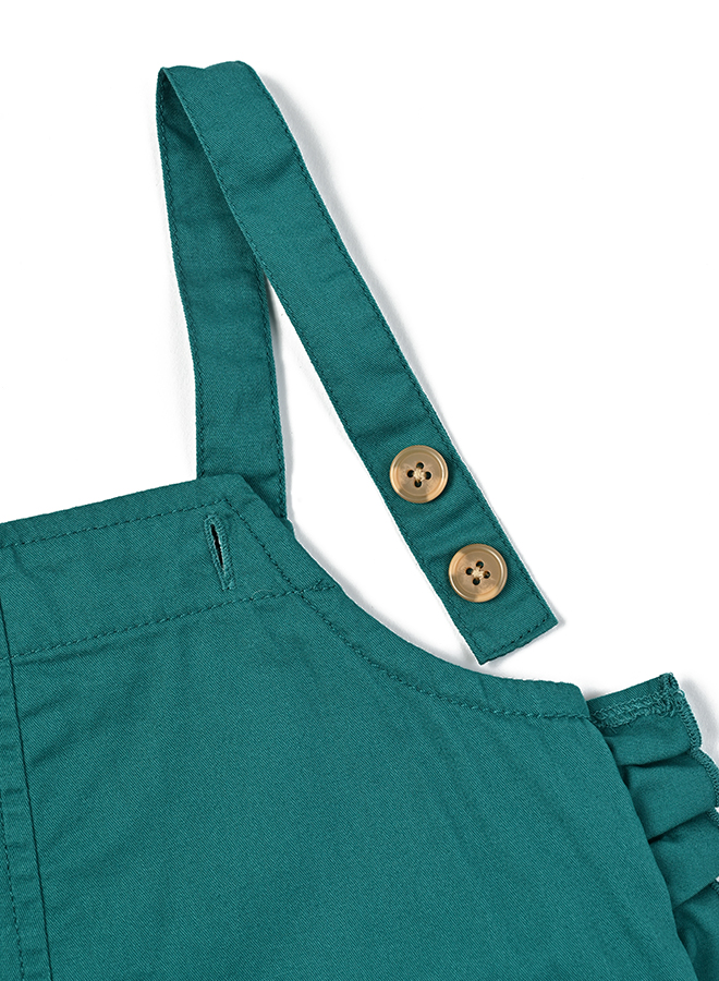 ・サイドの大胆なフリルが特徴的な、丸いフォルムが可愛いサロペット。