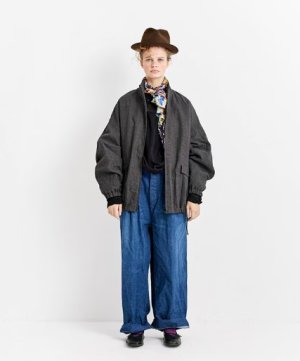ウエストサイズにゆとりを持たせ股上を深く設定しているため、サスペンダーの長さを調節することで好みの高さで着ることができます。裾に向かって真っすぐに落ちるワイドストレートシルエット。サスペンダーは取り外しが可能です。