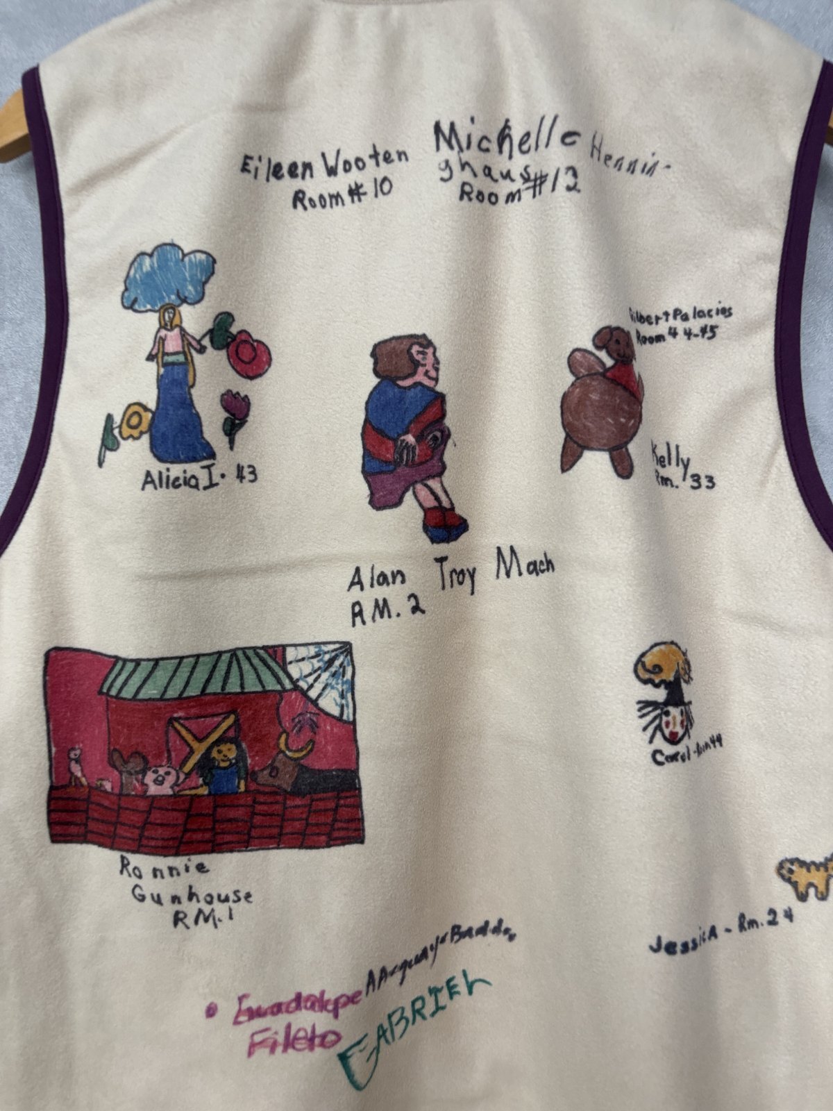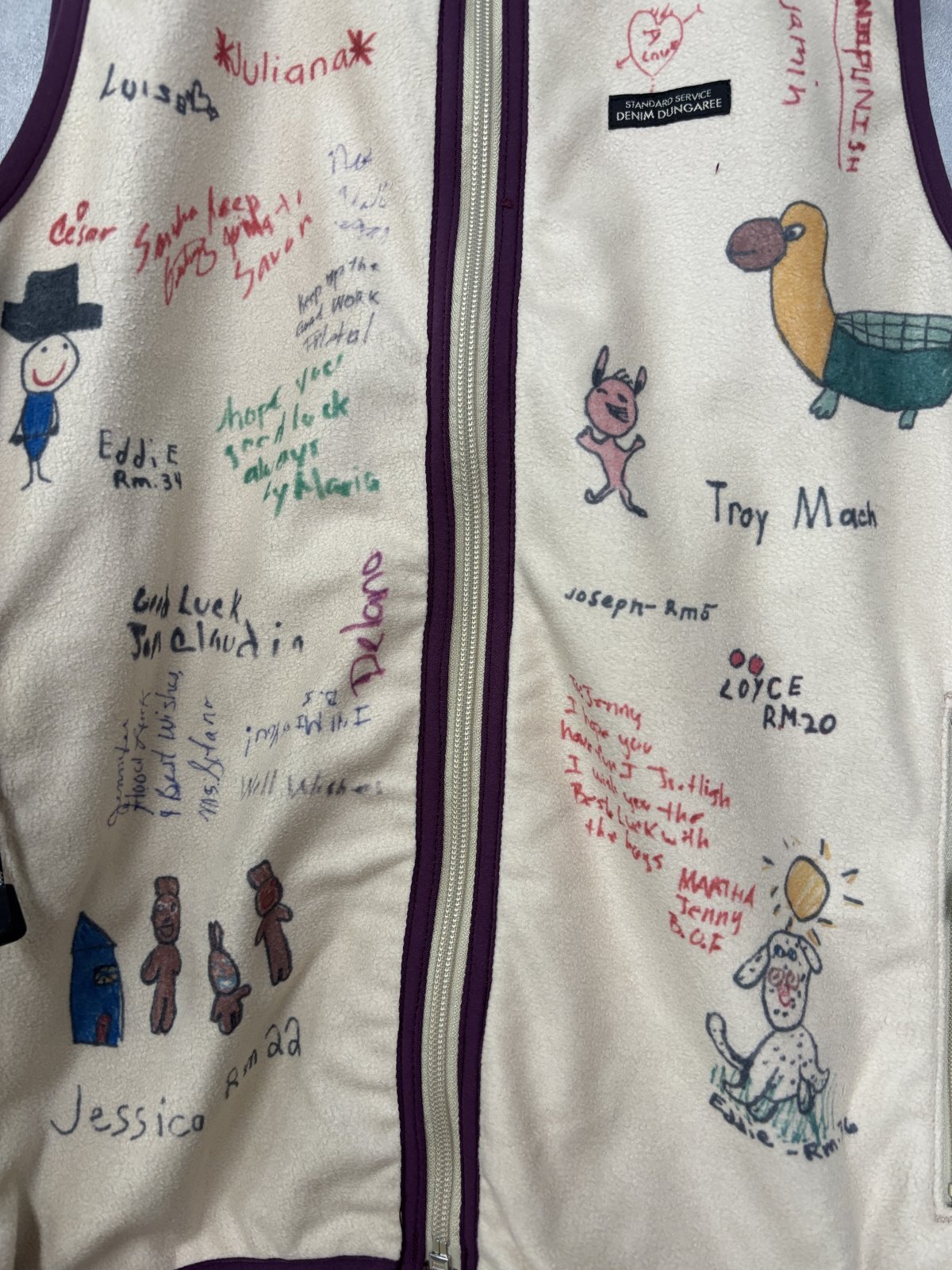 2025秋冬 DENIMDUNGAREE フリース ラクガキ ベスト 11;生成