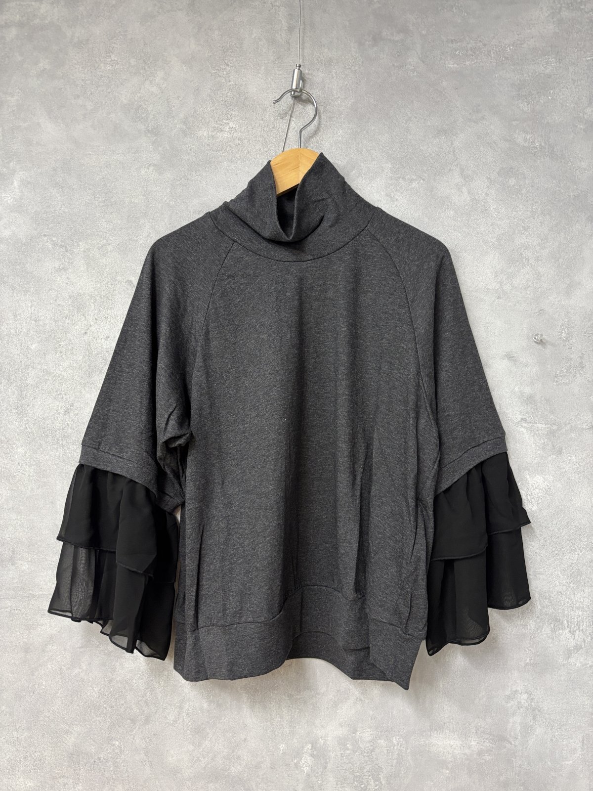 gomme ハイネックフリル袖カットソー 3;チャコール サイズ;M