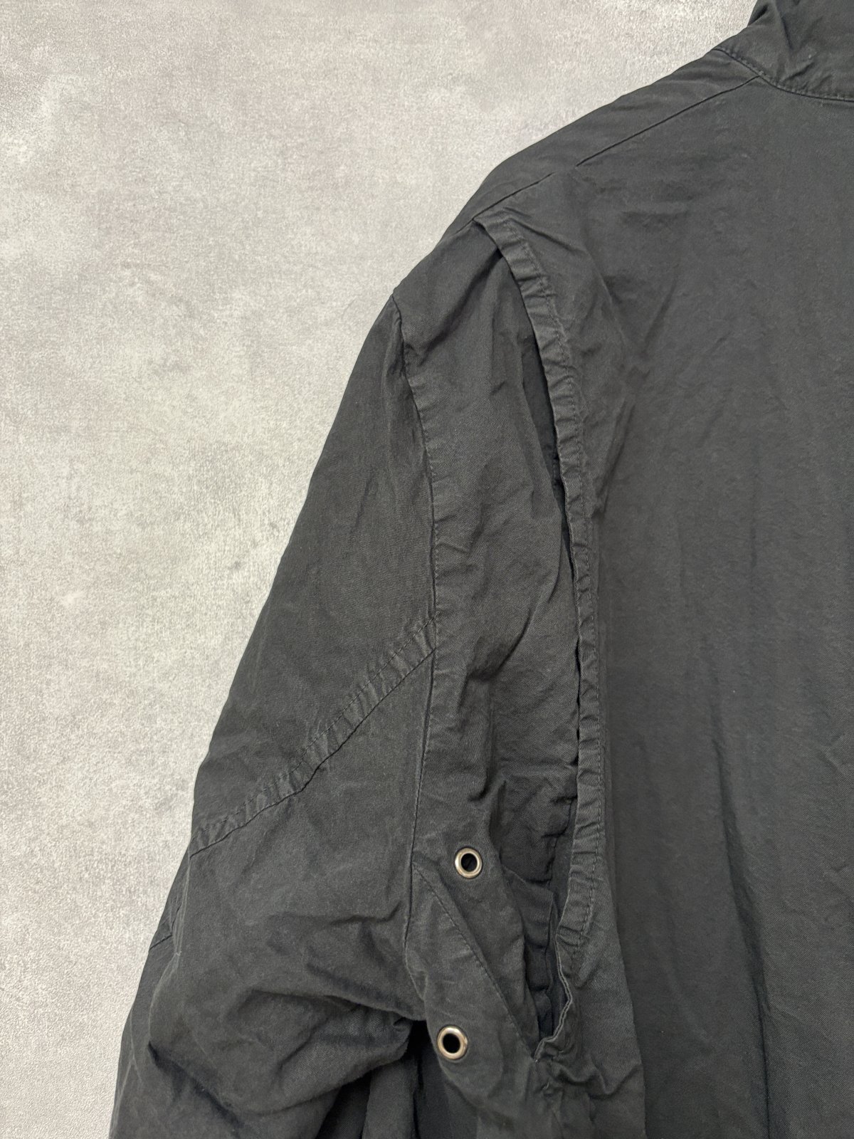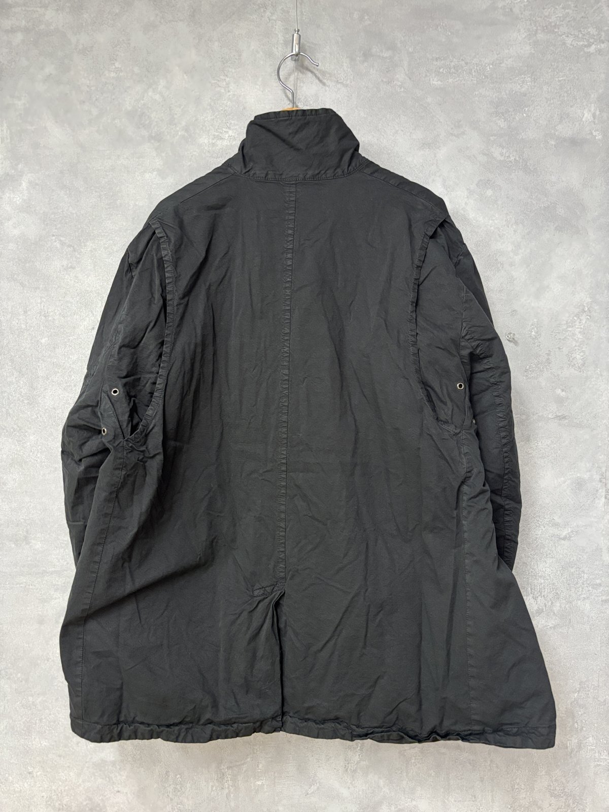コットンの厚手ハイカウントツイル生地を使用したコートです。製品染めによりパッカリングが起こり、カジュアルな表情に仕上がっています。天然染めによる奥行きのある色合いも魅力です。