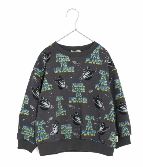 MakeYourDay 宇宙でひと休み総柄裏毛トレーナー カラー;チャコール [M540124]
