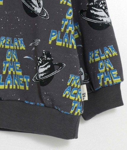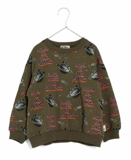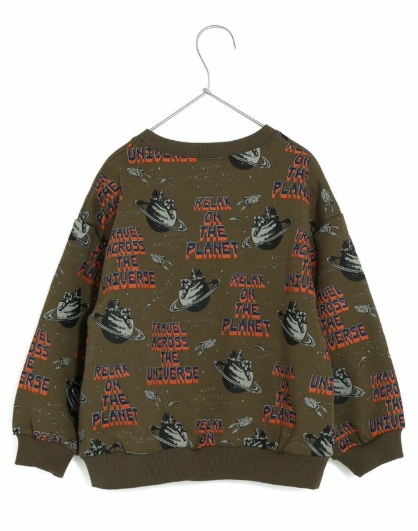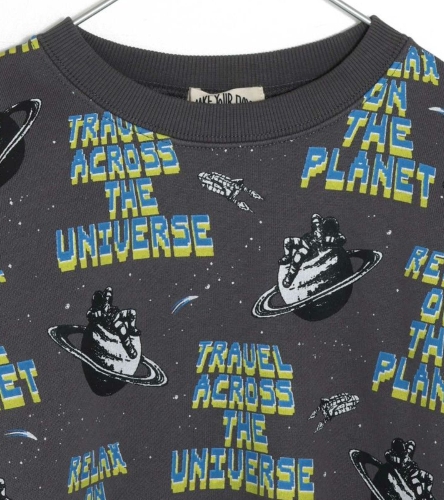 MakeYourDay 宇宙でひと休み総柄裏毛トレーナー カラー;カーキ [M540124]
