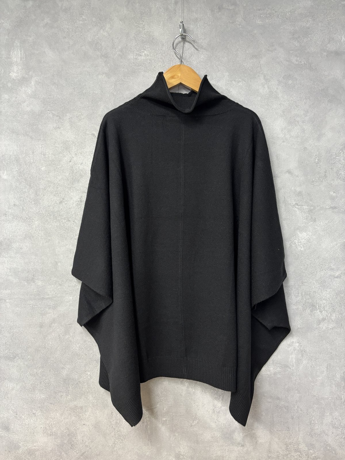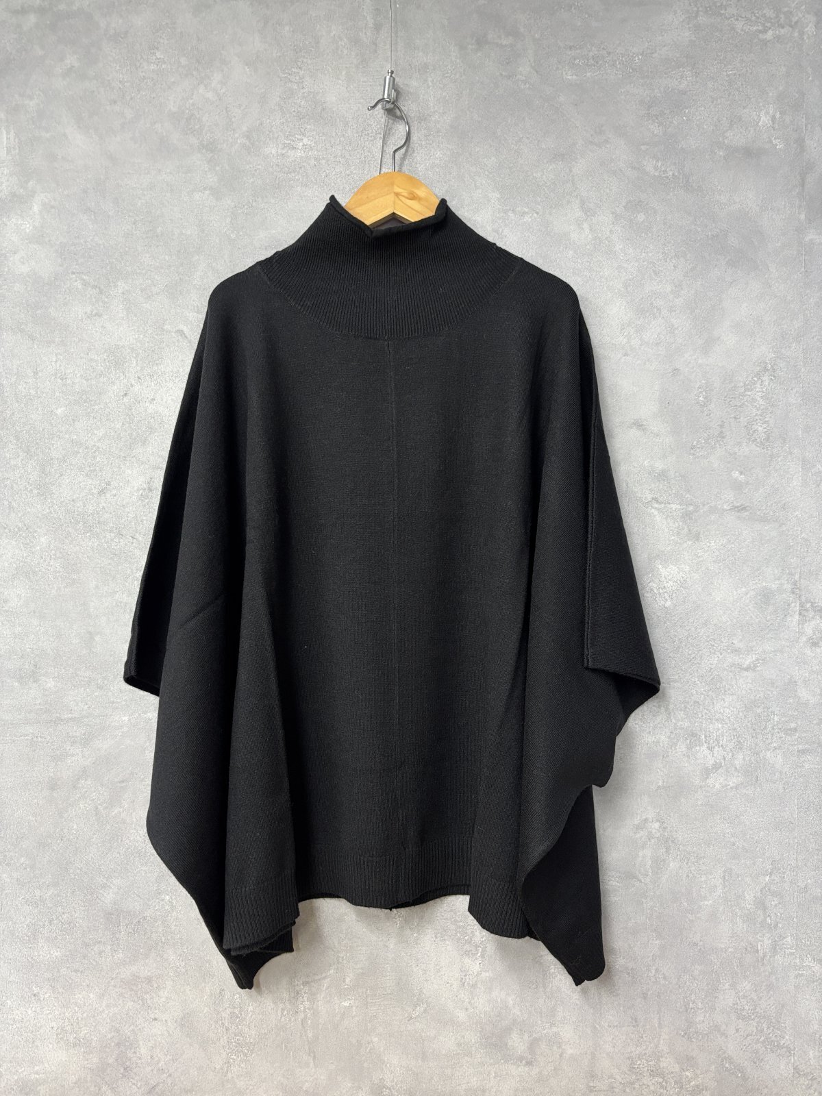 LILOU+LILY HIGH GAUGE KNIT BOTTLE NECK CAPE D.BLACK size:38