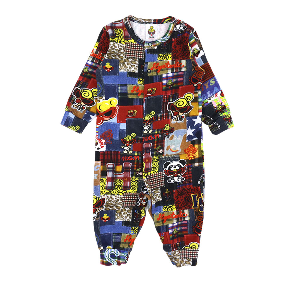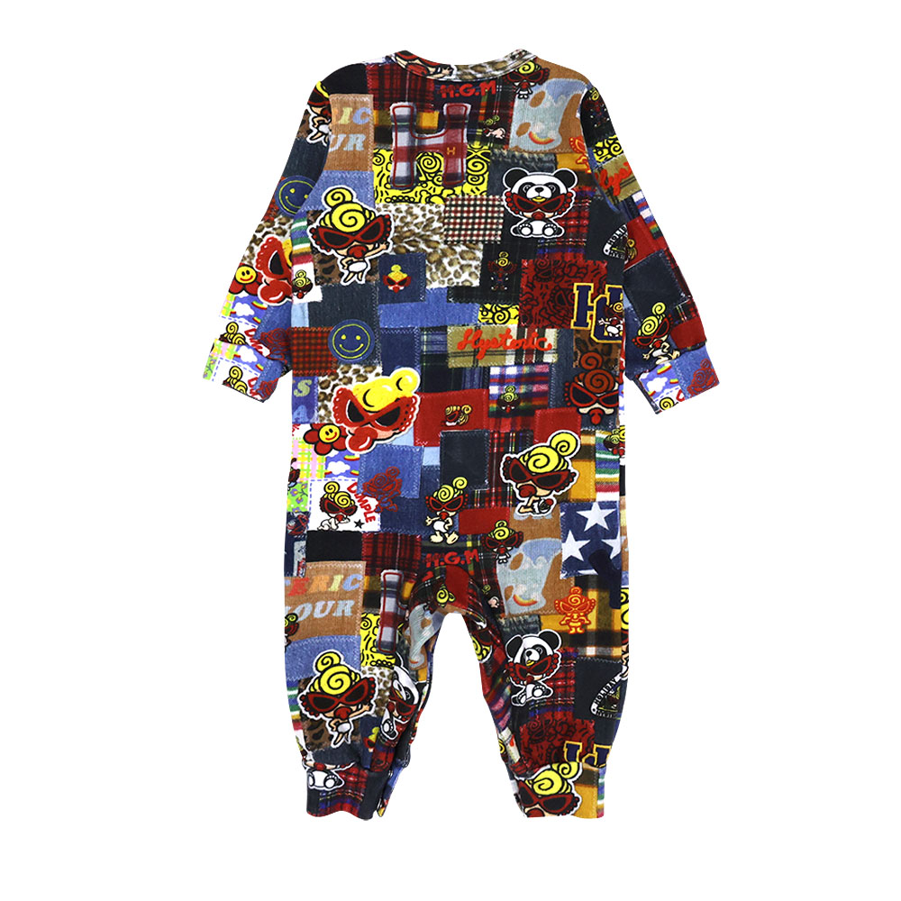 MY FIRST HYSTERIC MESSY PATCHWORK総柄 Viscotex 裏毛カバーオール 45;インディゴ