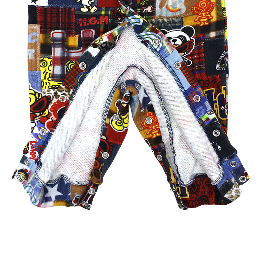 まるでMINIちゃんのアーカイブのような懐かしいMINIちゃんから今のMINIちゃんまでをバランス良くコラージュしたMESSY PATCHWORK総柄の裏毛のカバーオールです。中に肌着を重ね着しやすいゆったりとしたシルエットでベビーちゃんを包んでね♪