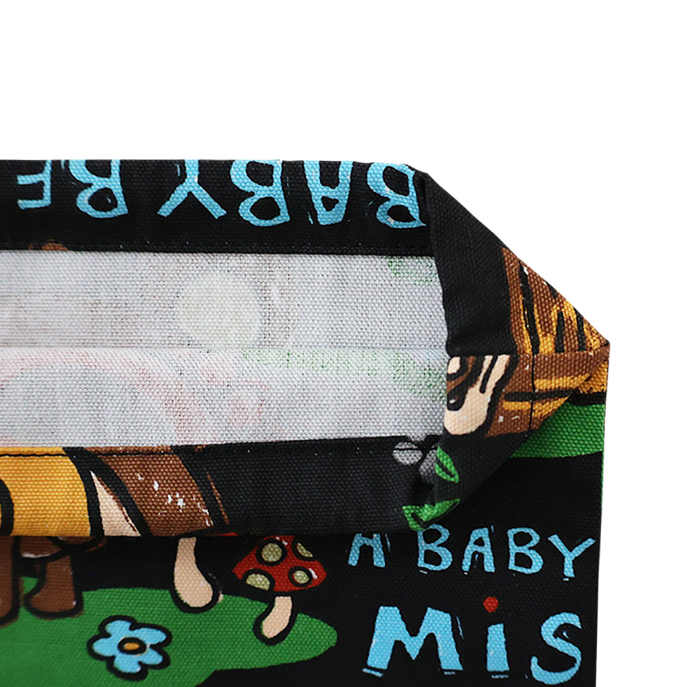 フリーハンド風のSELFISH BABYが可愛らしい総柄巾着はバッグの中の仕分け用のバッグインバッグとしても便利なアイテム♪適度な密度と強度に美しい織目で通気性もありシワになりにくく、その繊細な織目は細かなグラフィックも鮮明にキレイに表現されています。