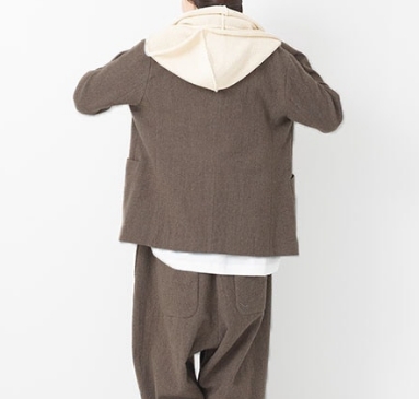 前身頃の大きめのポケットがポイントになっています。フォーマルにも、カジュアルにも合わせやすい1枚です。同素材とセットアップのコーディネートもオススメです。