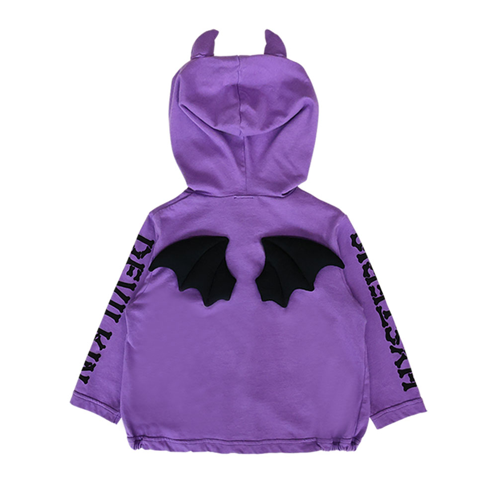 DEVILKINの定番羽織がなんとレベルUP☆フードのつのはもちろんですがなんとバックスタイルに立体的なリアルなDEVILKINの羽がつきました☆サイドの裾にゴムが入っているので着用すると少し丸みのあるシルエットが生まれてとってもキュートに仕上がっています。もちろん袖部分には外せないロゴデザインがプリントされています。
