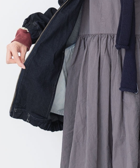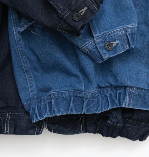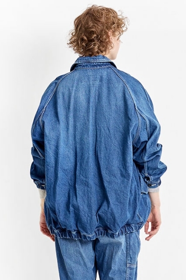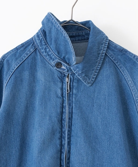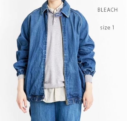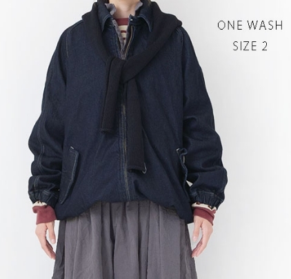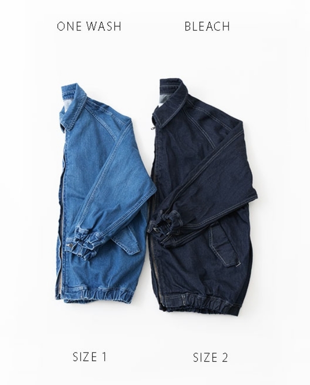 ボックスシルエットのデニムブルゾン。肩をややドロップさせたゆとりのあるサイジングで、裾にゴムを効かせています。フロントはファスナー開き。ユニセックスの 2 サイズ展開です。カラーは加工を施した BREACH と 洗いを掛けた ONEWASH の 2 色展開です。