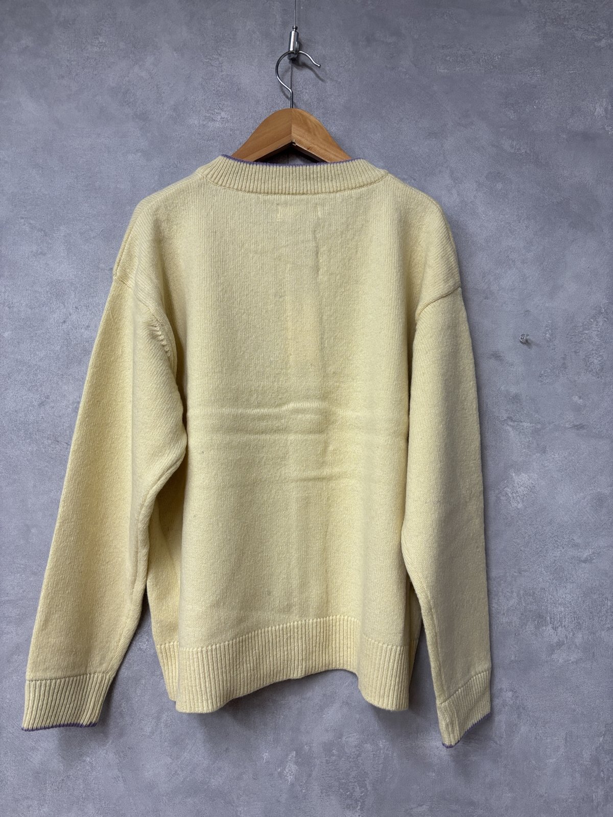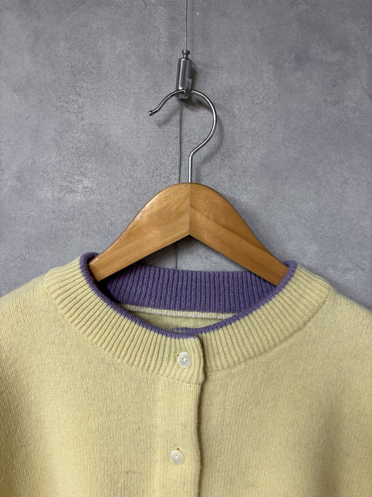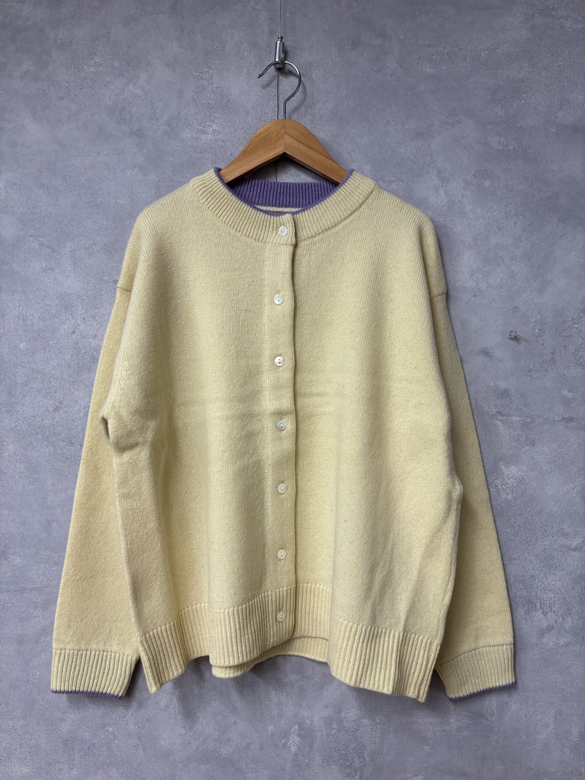 YARRA ラムウール配色ニットカーディガン 25;イエロー FREE [YR-1552-273]