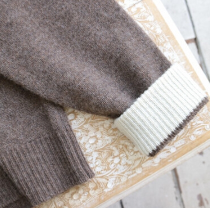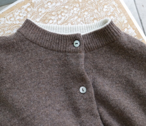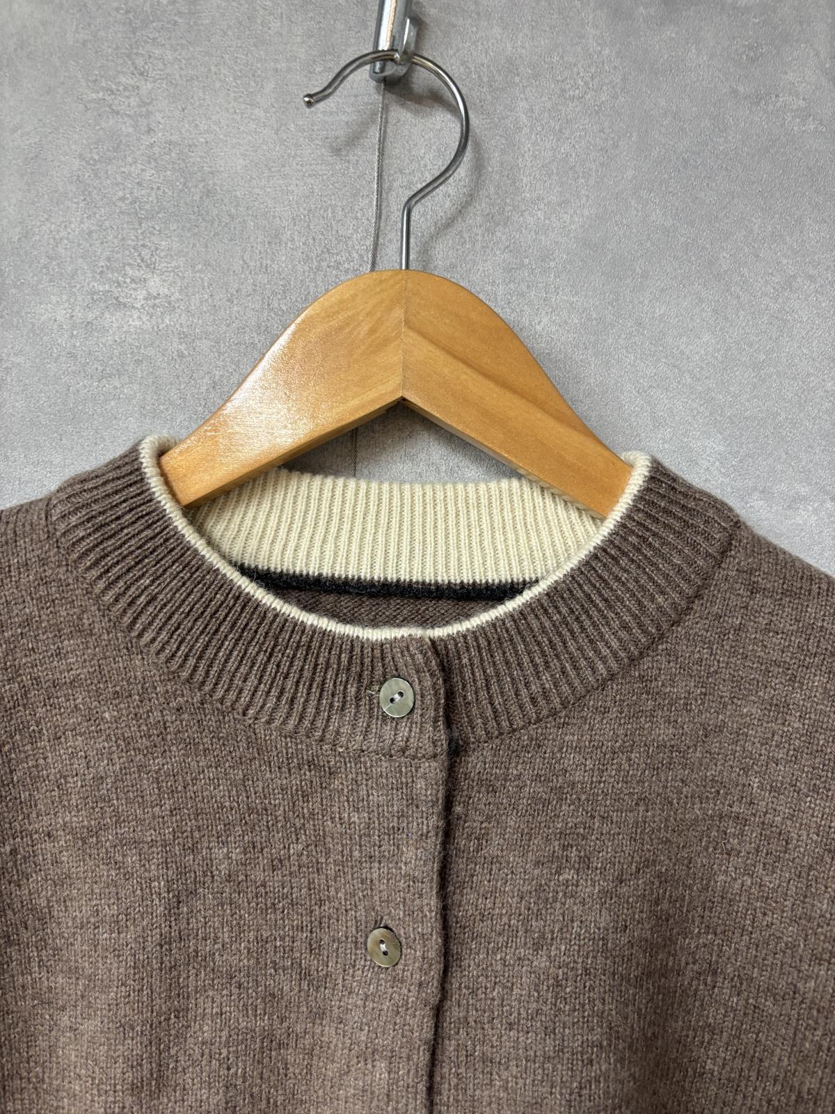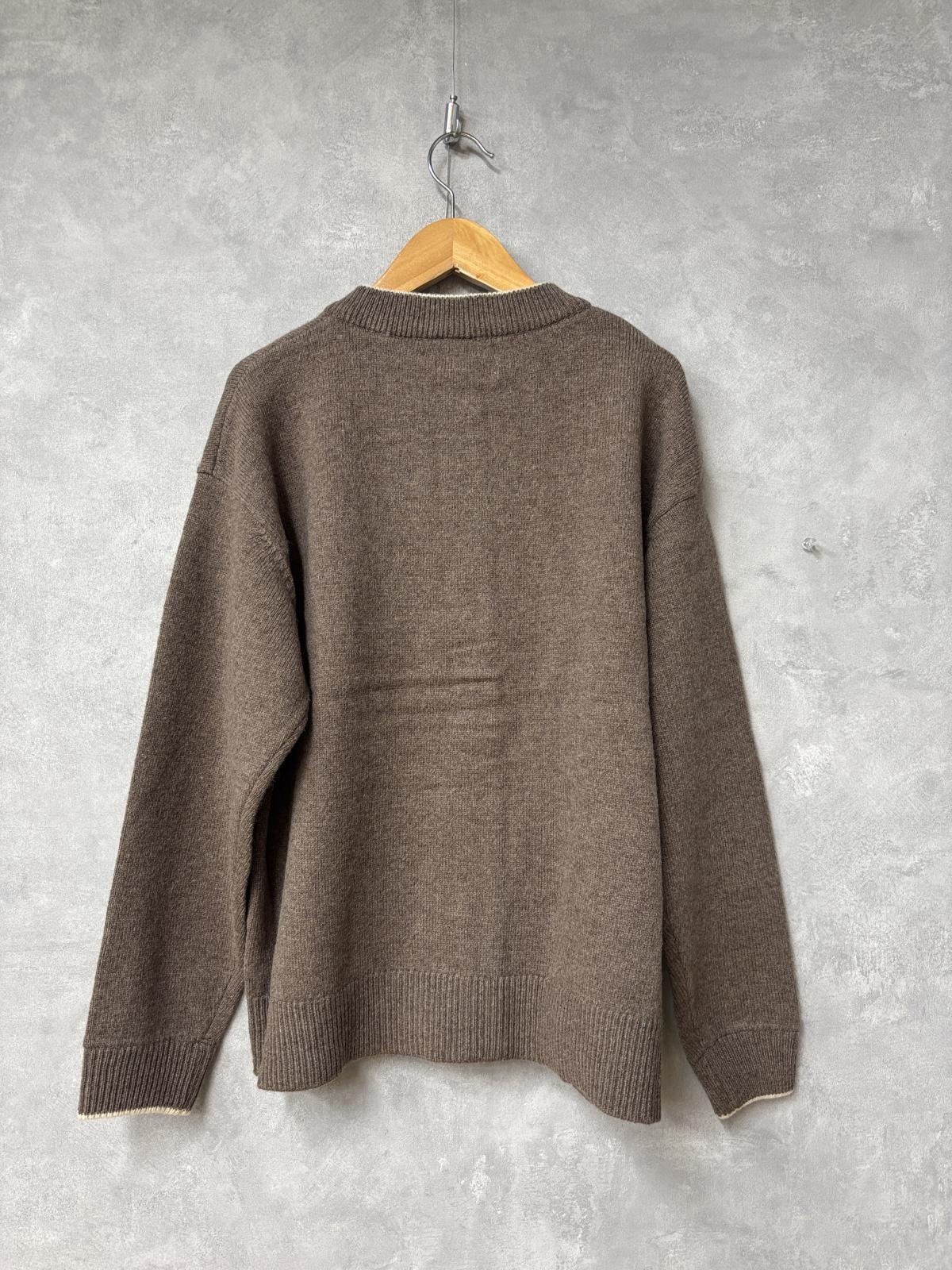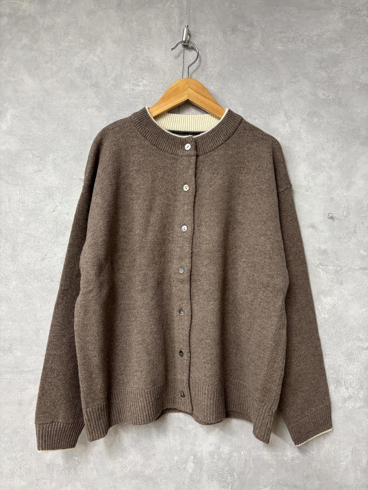 YARRA ラムウール配色ニットカーディガン 63;モカ FREE [YR-1552-273]