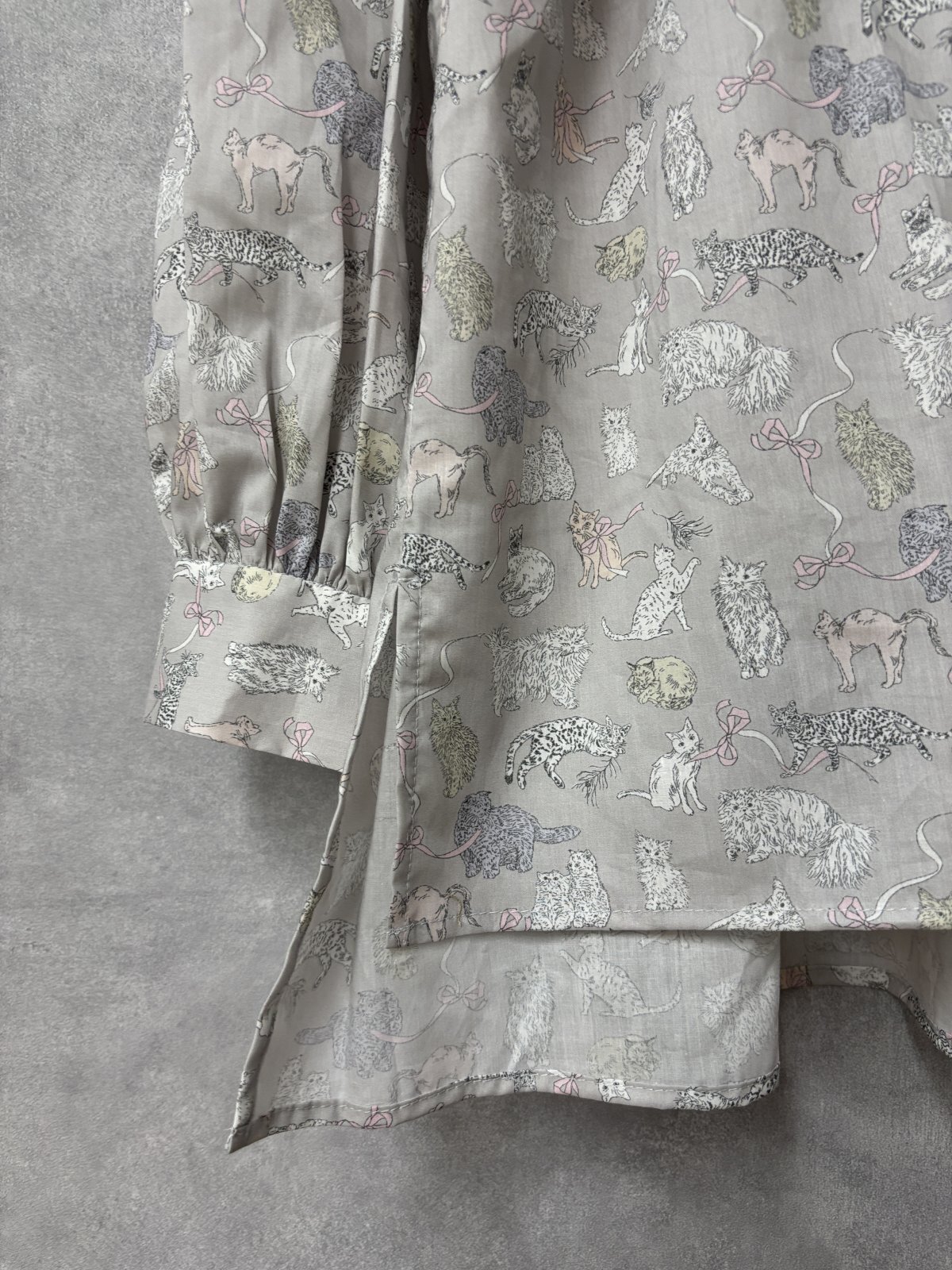 LILOU+LILY LIBERTY TANA LAWN SHIRTS 〈CAT〉 グレー サイズ;38 [2507YJ-1001]