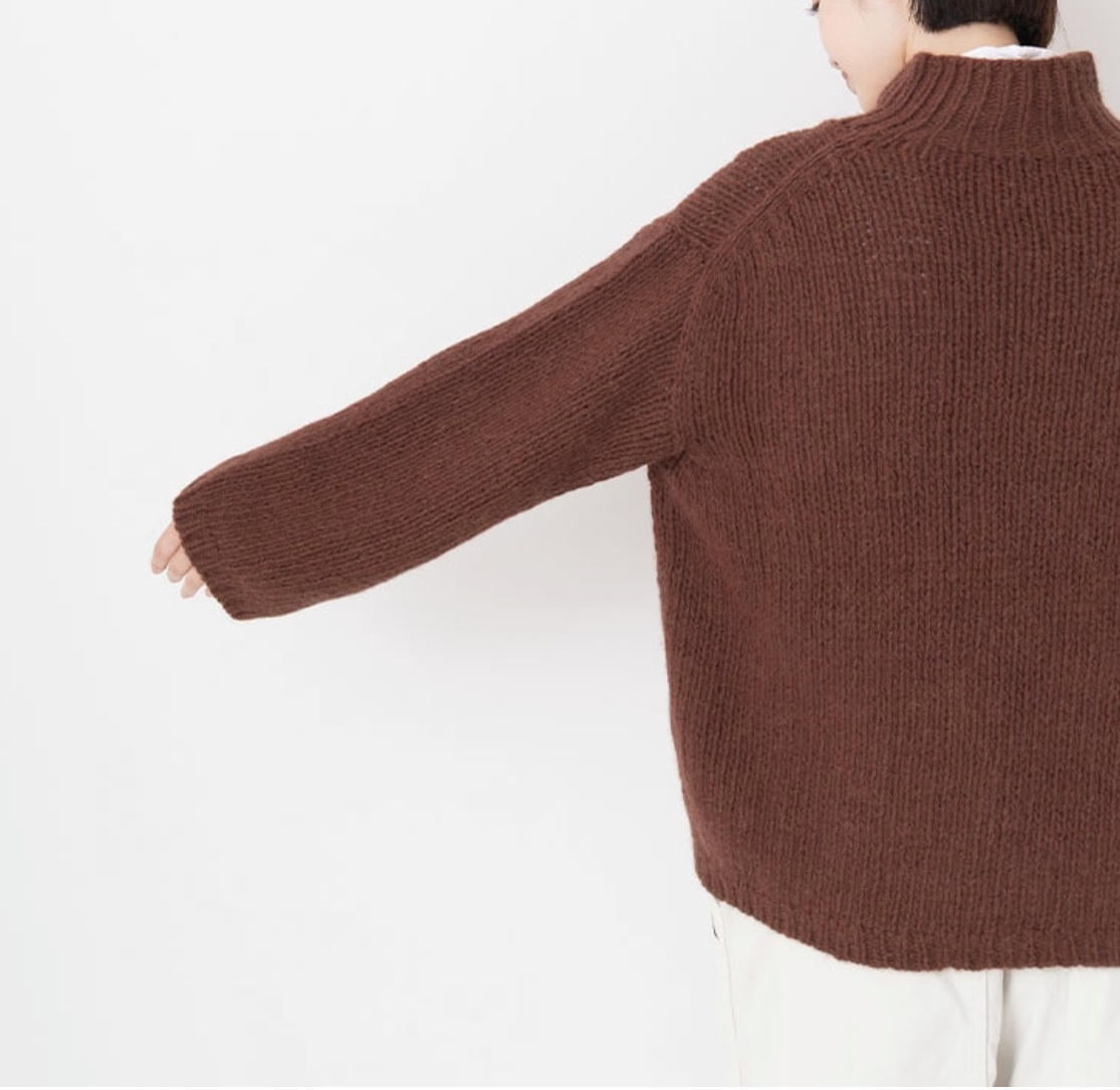 空気を含んだような山ら角温かみのある雰囲気はハンドニット(手編み)ならでは。ベーシックな色合いで永くご愛用いただけます。