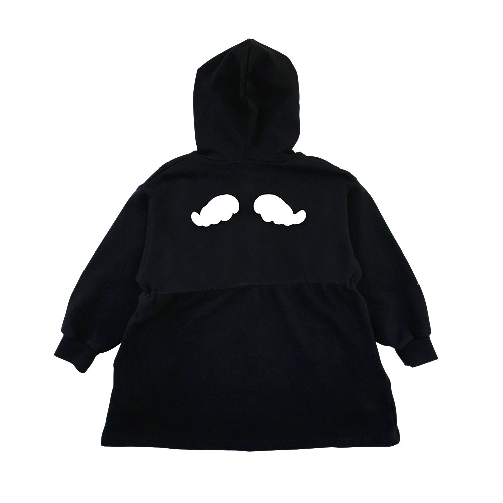 ふんわりとしたゆったりシルエットの裏毛ワンピースに立体的な羽がついたとってもキュートな1枚です。内側にウエストを調節できるゴムが入っているのでお好みのラインでスタイルを楽しめます。ハイソックスと合わせてコーディネートを楽しんでね♪