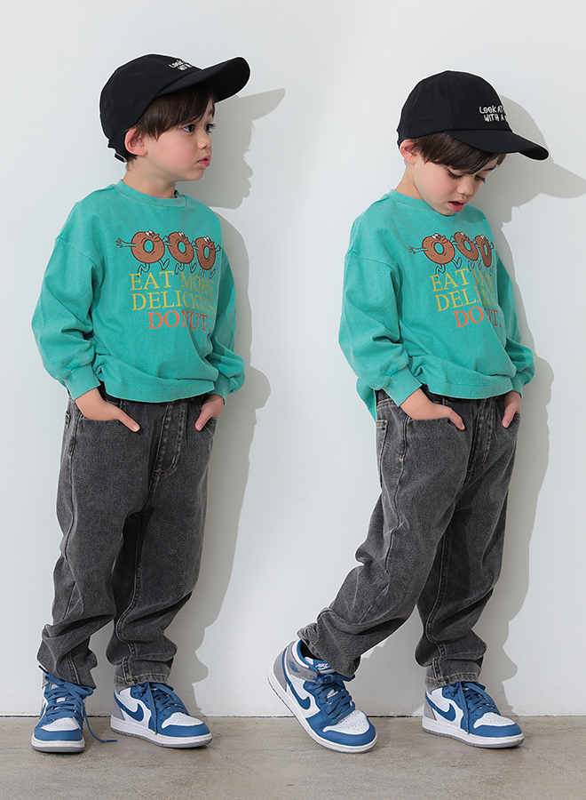 OCEAN&GROUND ユーズドウォッシュデニムニットパンツ カラー;ブラック サイズ;90