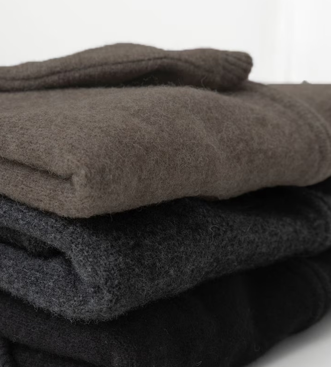 獣毛の中でも細く長い繊維をもつラグジュアリーなYAKを高混率でブレンドした糸を使用しています。暖かさはもちろんのこと、素肌に触れた時の感触も極上の柔らかさ。YAKらしい深みのあるカラーも魅力です。