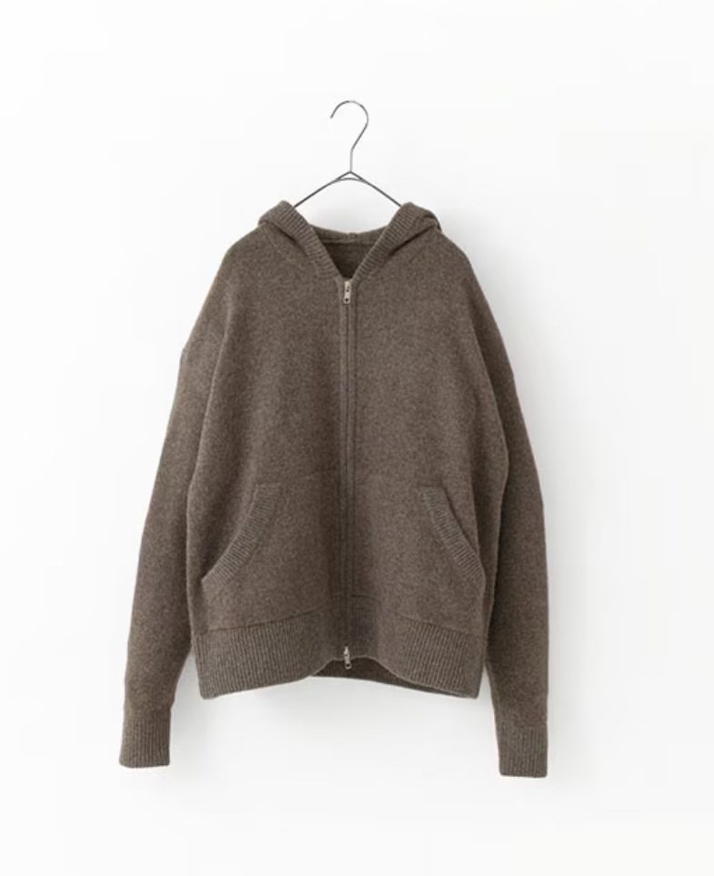 ゆったりと編まれたフーディーニット。カジュアルにもラグジュアリーにも色々なシーンに寄り添うアイテムです。