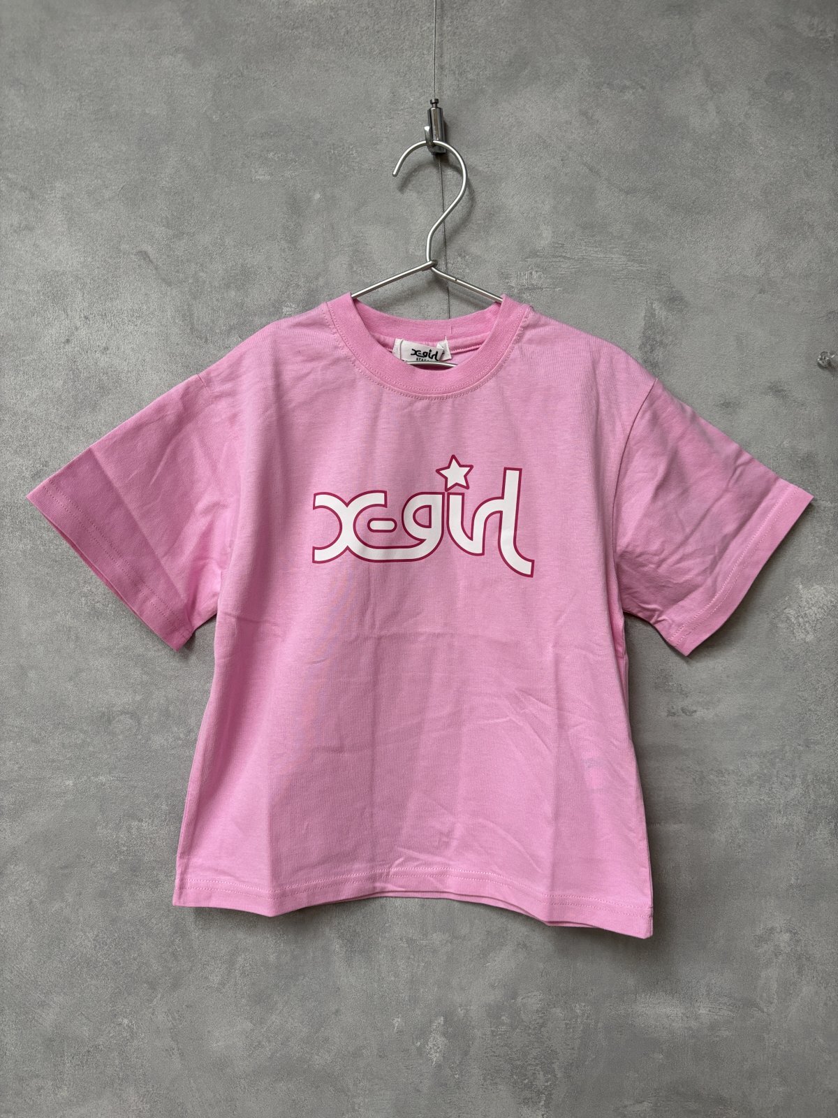 X-girl kids ミルズロゴ半袖Tシャツ 11;ピンク [9261219]