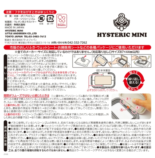 ウェットシートやおしり拭きのパッケージに繰り返し使える便利なビタットのワンプッシュタイプです。キュートなLITTLE ANGEL柄で日々の気分もUP☆片手で簡単に開けられるストレスフリーな嬉しいアイテムです。使用の際は商品パッケージ記載の使用方法及び使用上の注意をご確認ください。