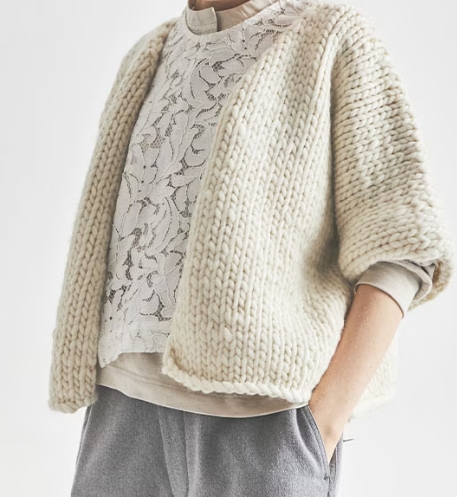 短めの丈のドルマンスリーブと着丈をコンパクトにし身体裁きのようデザインです。ボタンレスでお好みの着こなしをお楽しみいただけます。