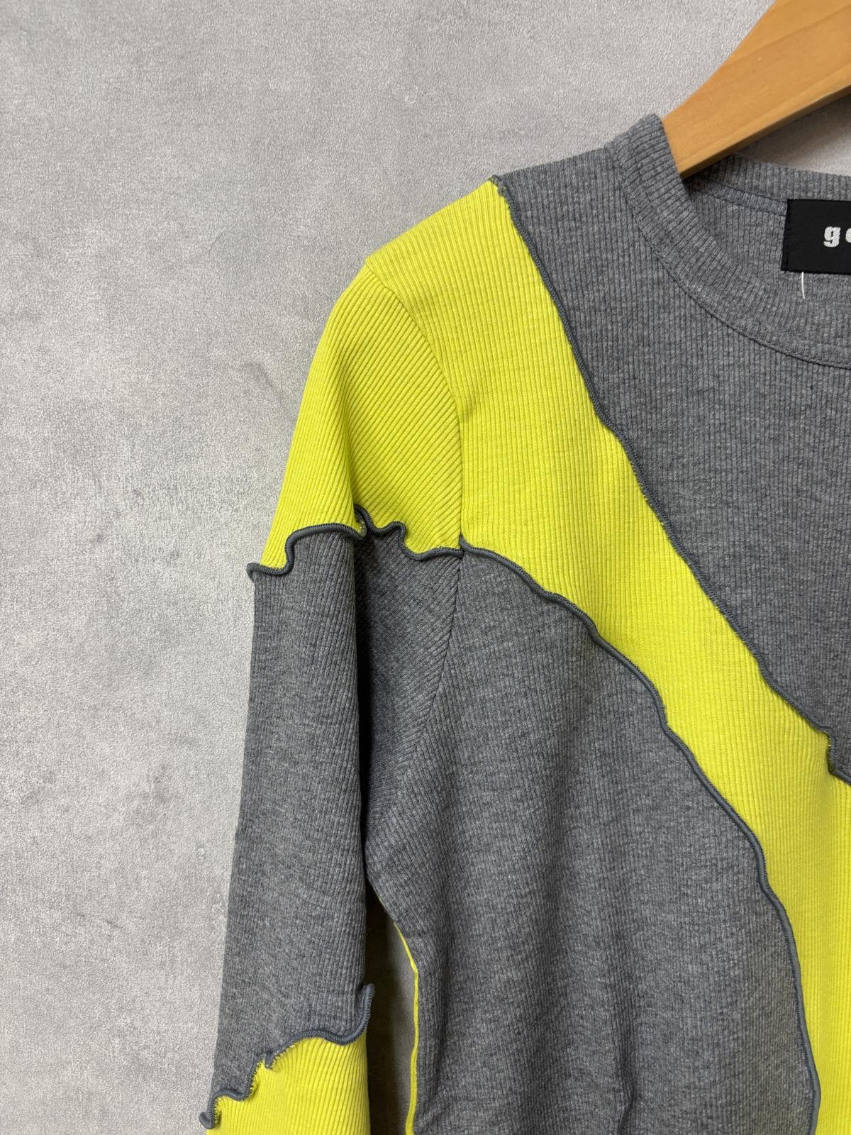 gomme テレコ切替長袖Tシャツ チャコール*イエロー サイズ;M [GNT31-138]