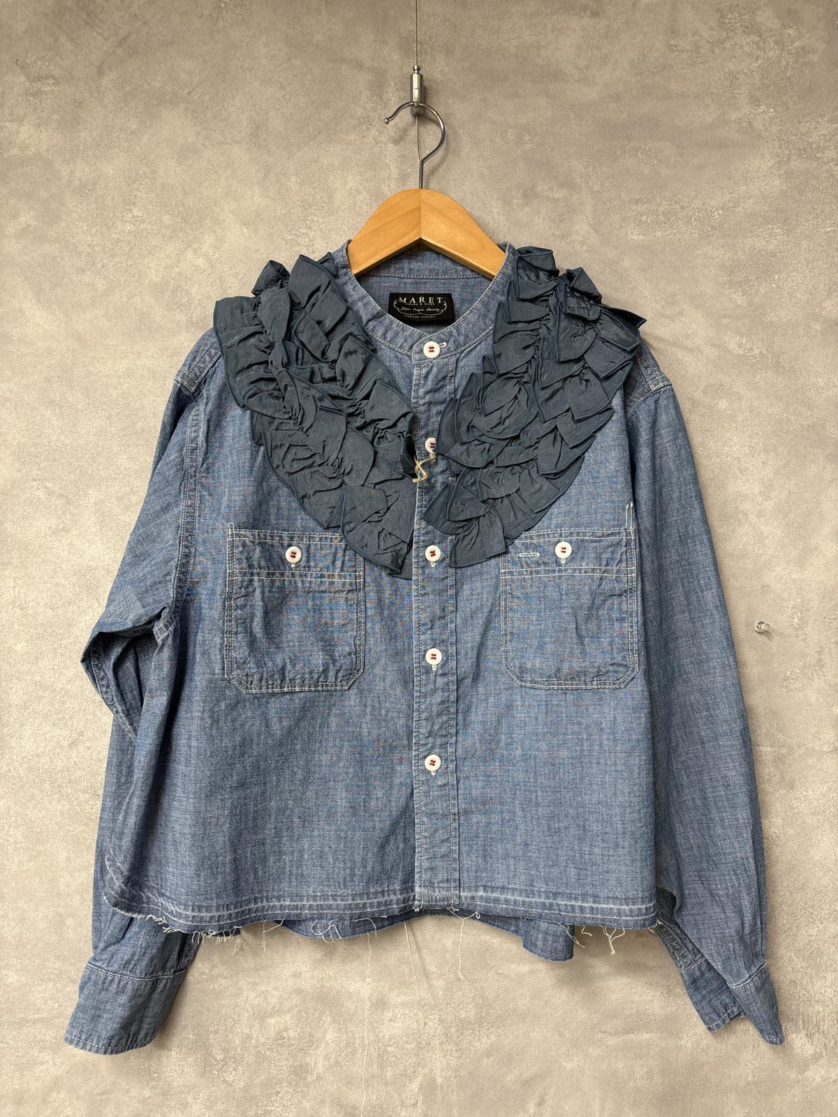 2026春夏 MARET(マレ) ビンテージダンガリーワークフリルシャツ 14;ブルー サイズ;F [M236S14]