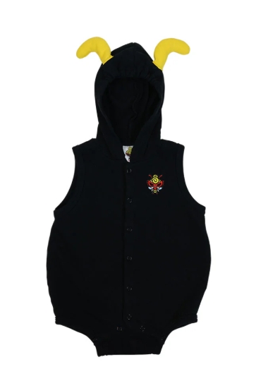 立体的なつのとLITTLE BEEのしっぽが可愛らしい裏毛のロンパースは中に半袖、長袖を着て重ね着を楽しむのがお勧めです。フードをかぶった時もちゃんとつのがしっかり立つように仕上がっているこだわりの1枚です。フロントの繊細な刺繍とバックのLITTLE BEEのデザインもとってもキュート☆