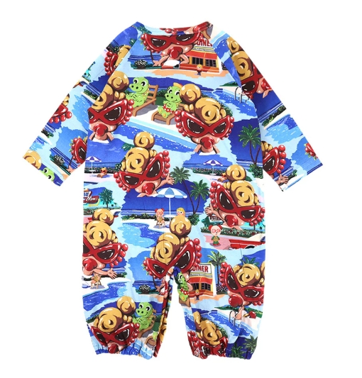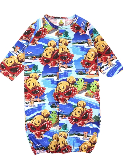 爽やかな海のブリーズを感じさせてくれるA SONG VACATION総柄の2WAYALL☆寝かせながらもお着換えが可能な2WAYALLは長く愛用できるので重宝します。その年の収穫の中から厳選された良質のコーマ糸を使用しているので表面感もキレイで風合いも柔らかい素材で仕上がっています。サイズFREE(60-70cm)
