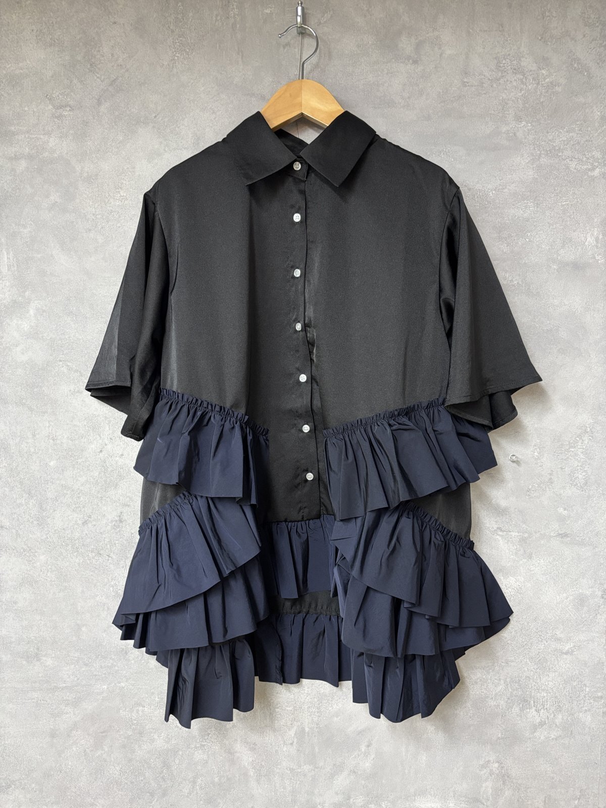 ??nunuforme ボリュームフリルシャツ BLACK [14-nf25-549-253A]