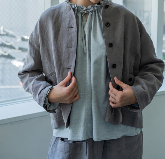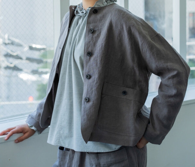 YARRA リネンノーカラージャケット 80;グレー FREE