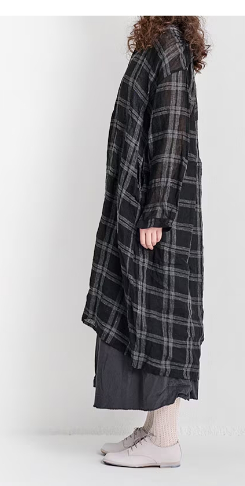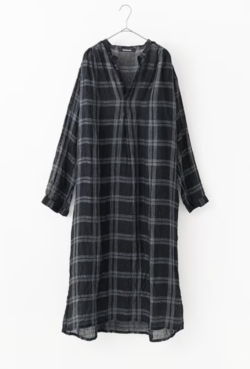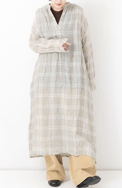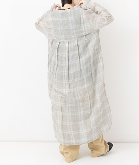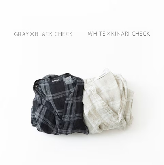 透けのある軽やかな風合いが魅力のVeritecoeurオリジナルのリネンボイル素材です。糸になる前の繊維の束 ( トップ ) を染色してから紡績されたトップ糸を使用。それにより糸に自然なムラや陰影が生まれ、趣きのあるチェック柄に仕上がっています。