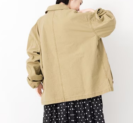フロントの 4 つのポケットが特徴的なワークジャケット。身巾にゆとりを持たせたオーバーサイズのボックスシルエットです。バイオ加工を施し初めから肌なじみの良い風合いに仕上げました。