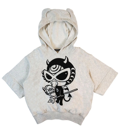 HYSTERIC MINI DEVILKIN つの付き 半袖裏毛 パーカー 16;オートミール [16144115]