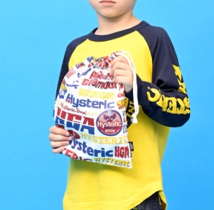 お子さまから大人の方まで使用しやすいサイズ感の巾着はギフトのプラスワンアイテムとしてもお勧めです。人気のロゴグラフィックがバランス良くコラージュされた総柄で気分もアップ♪