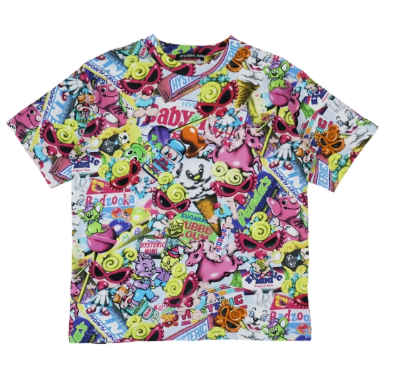 Viscotexによる繊細なプリントで再現されたHYSTERIC MINI IN WONDERLAND総柄は色鮮やかでコーディネートの主役になること間違いなし☆キュートな世界観がポップカラー配色で表現されているところがポイントです。表面感もキレイで着心地もGOOD♪