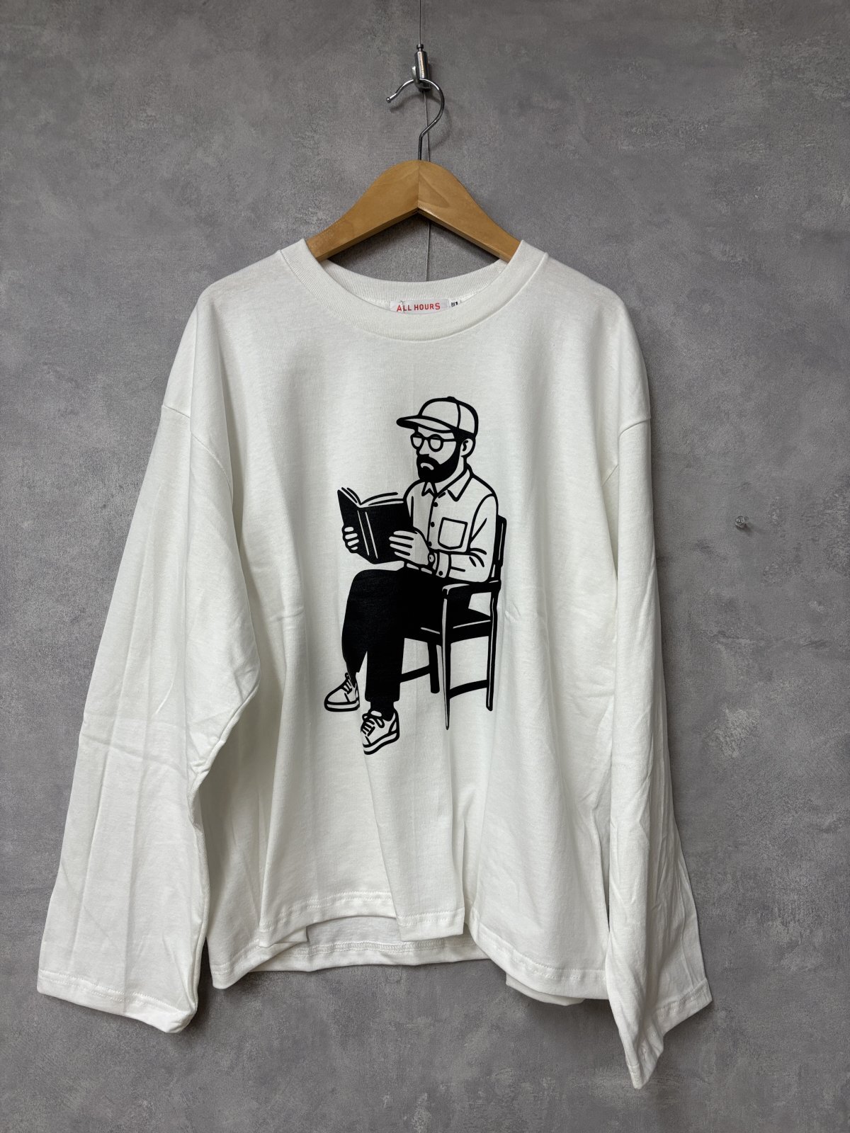ALL HOURS 6.0oz MIDI WEGHT L/S TEE BOOK LOVER A.WHITE サイズ;1