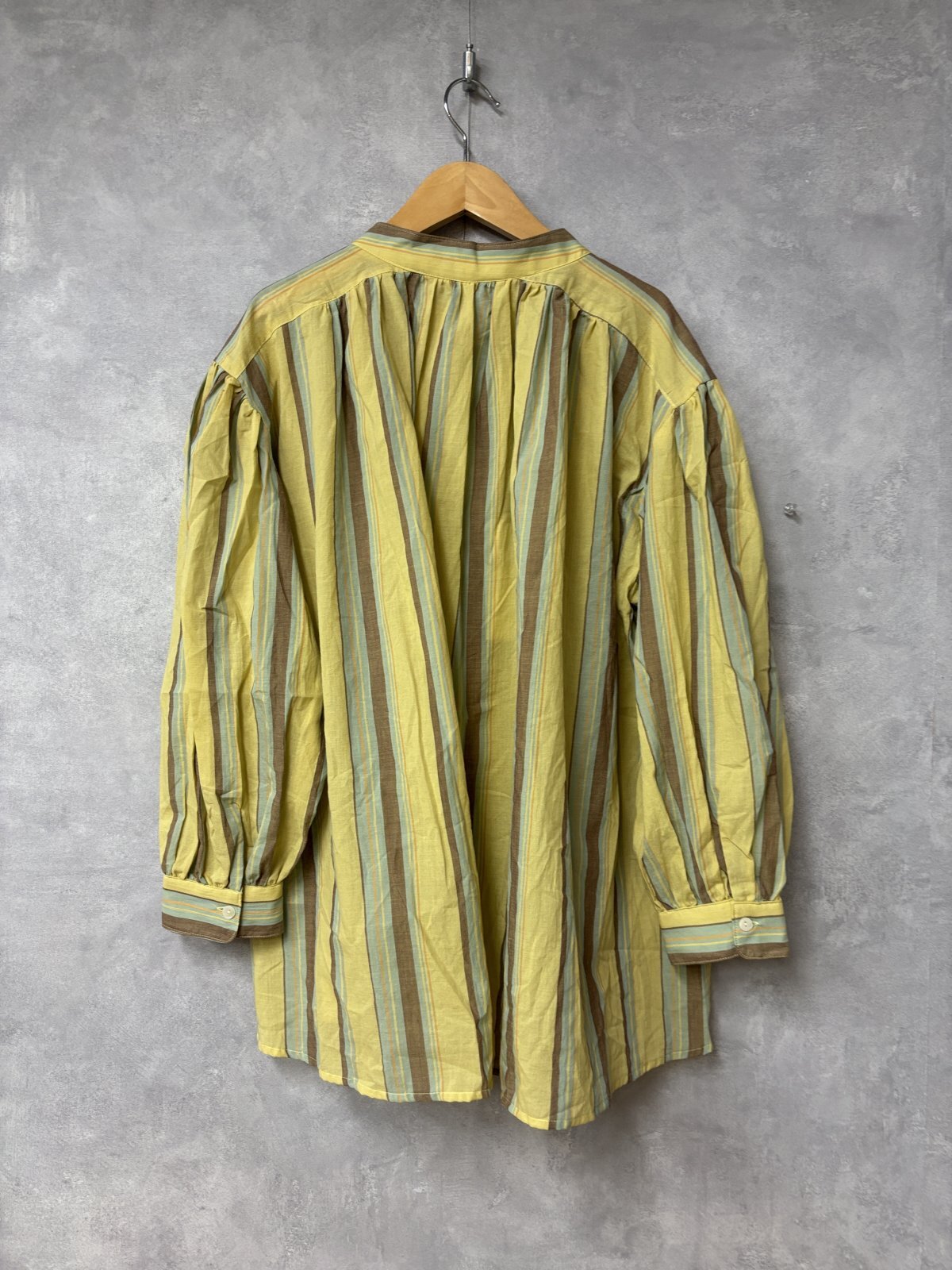 LILOU+LILY SHUTTLE NOTES STRIPE&CHECK BLOUSES A.YELLOW STRIPE size:38 [2510YJ-0209]