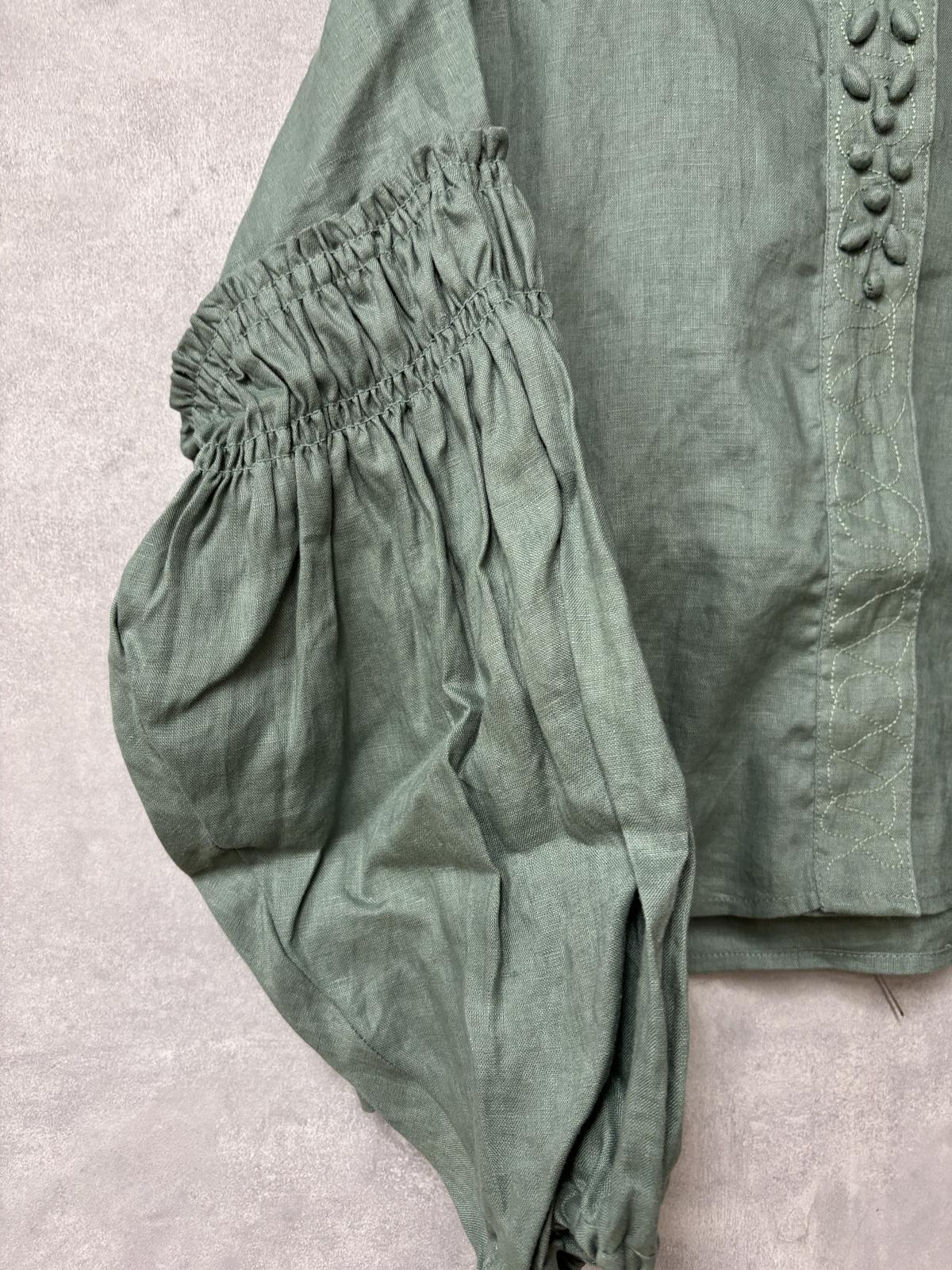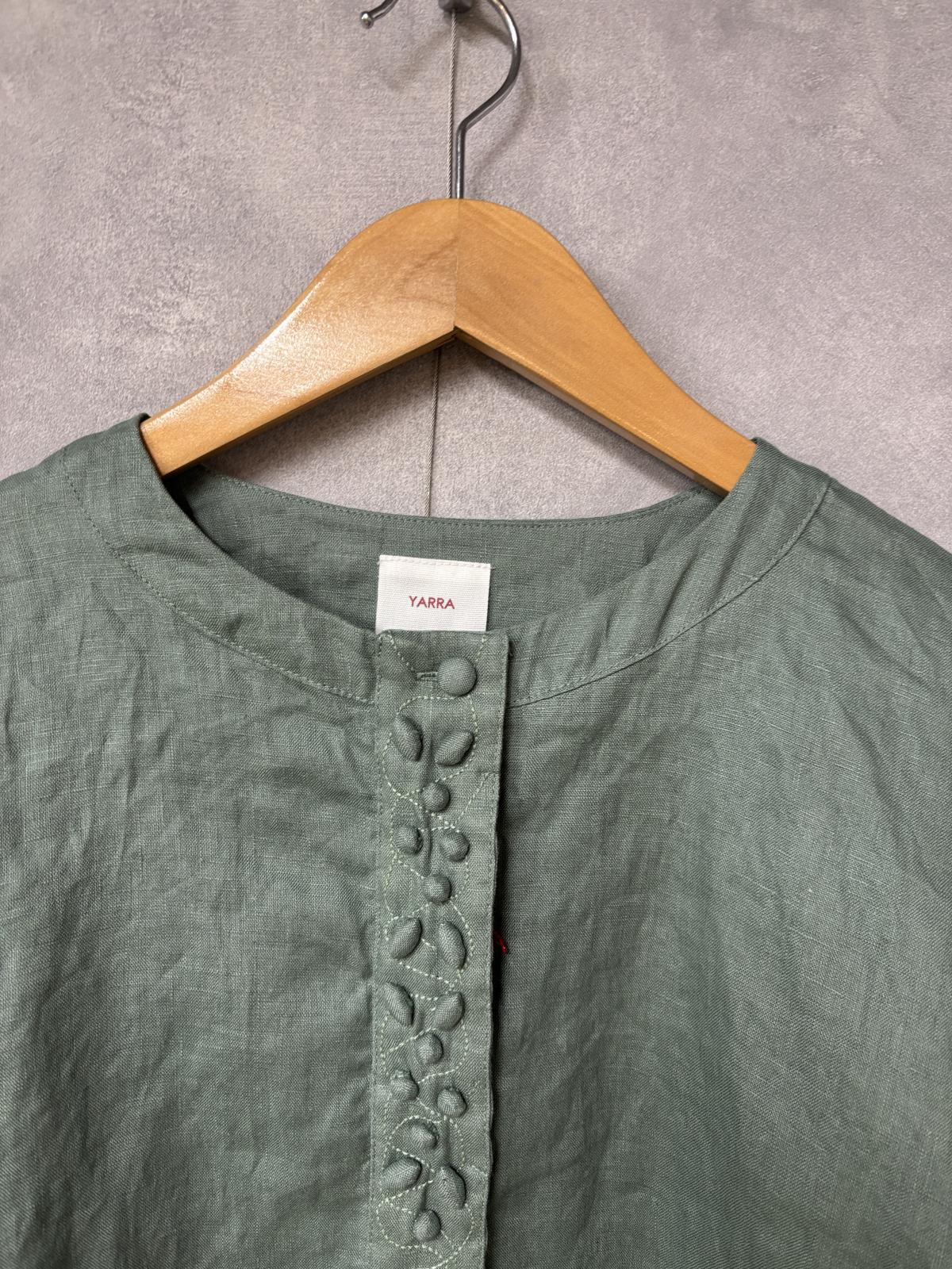 YARRA ビーズ刺繍リネンブラウス 30;グリーン FREE