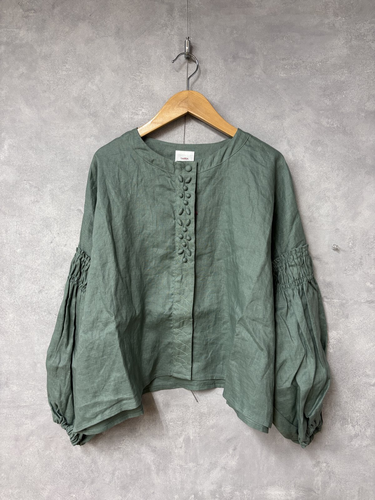 YARRA ビーズ刺繍リネンブラウス 30;グリーン FREE [YR-1613-222 ]