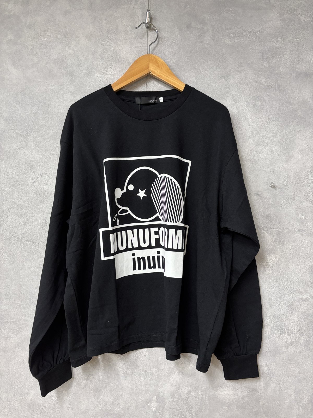 商品説明: nunuformeの人気キャラクター「inuinu」を大胆にプリントしたロングスリーブTシャツ。 スクエアフレームのデザインがグラフィカルで、1枚でストリート感のあるコーデが完成します。 ゆるっとしたワイドシルエットで、デイリーにも親子リンクにもぴったり。