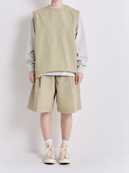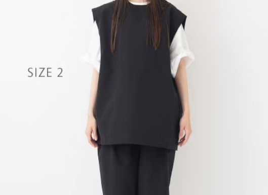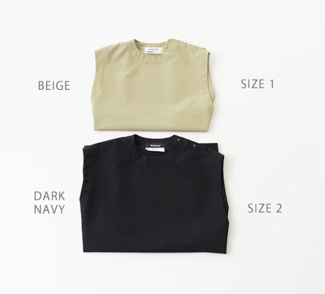 ゆとりのあるオーバーサイズシルエットのベスト。肩で開閉するデザインです。カットソーやシャツなどさまざまなアイテムとのレイヤードをたのしむことができます。ユニセックスの 2 サイズ展開です。