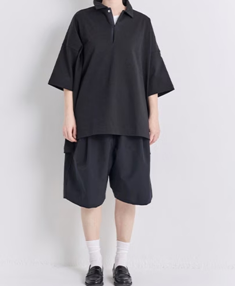 Veritecoeur ユニセックスプレーティング天竺 POLO/C S/S BLACK