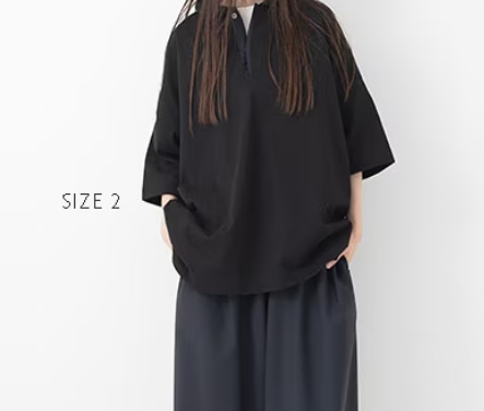 ドロップショルダーでワイドシルエット。色々なボトムと相性も良く、コーディネートの幅が広がる2サイズ展開です。裾はシャツテールに仕上げています。