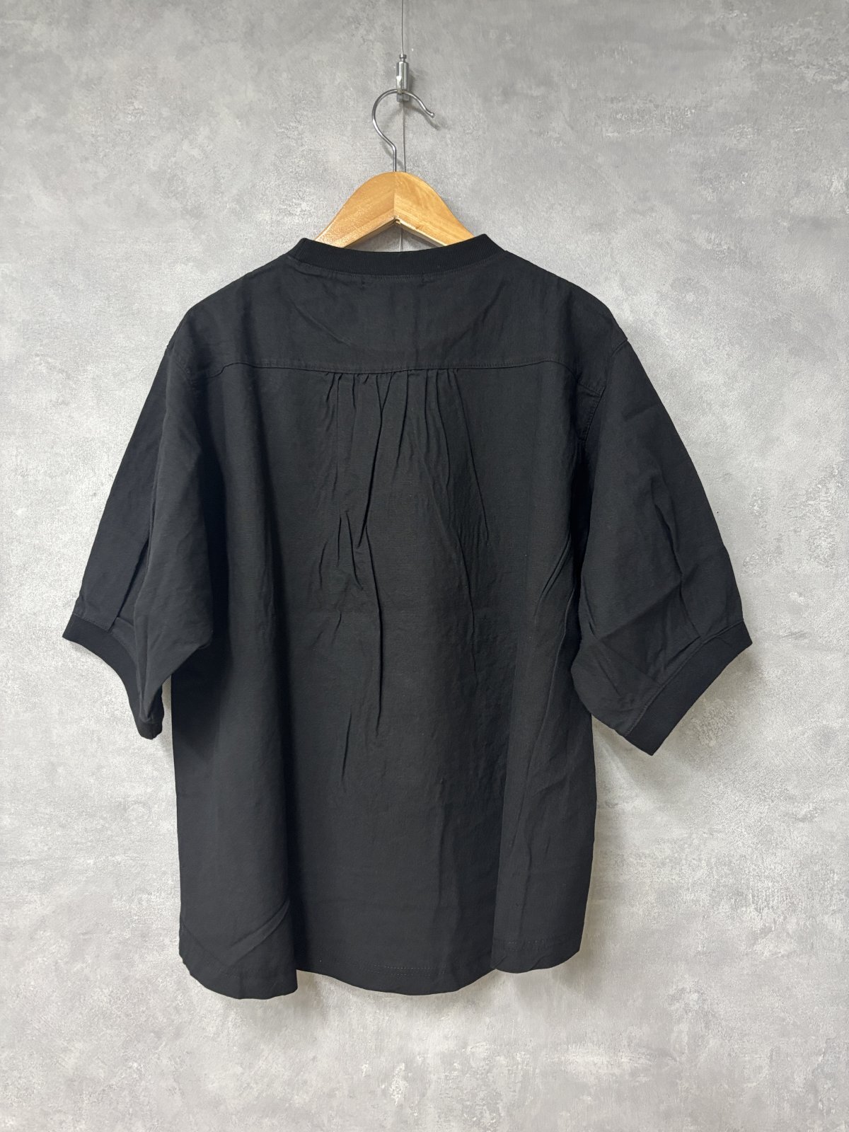 ヴァンブラン vent blanc 10/-先染天竺*リネン/コットンコンビプルオーバー BK/OW サイズ;F