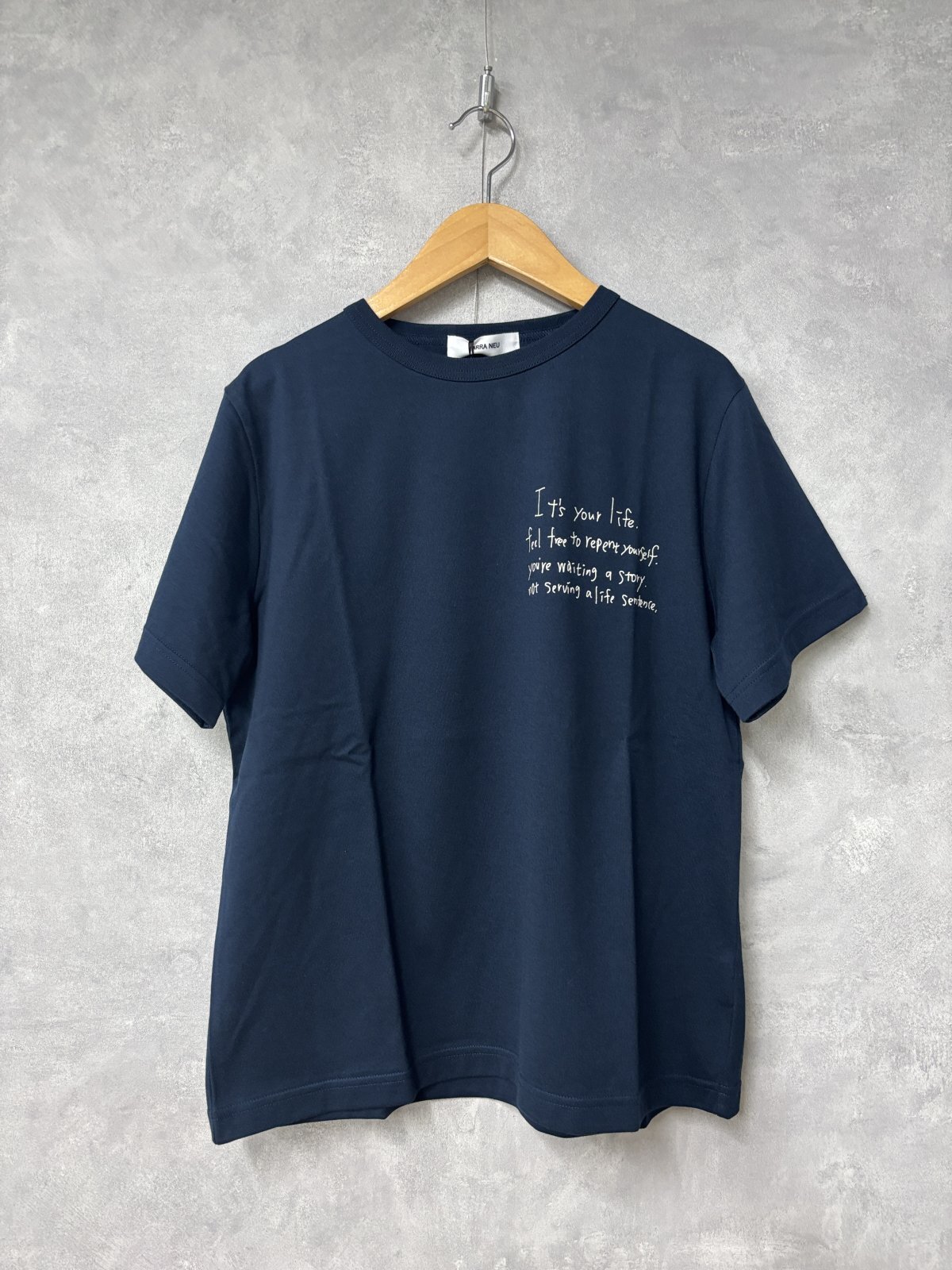 YARRA NEU 5周年記念限定アイテム バックに5周年を記念したプリントを入れた普段使いしやすいTシャツです。ロゴプリントは手書きの文字をそのままプリントにしたもの。人生においてのポジティブな言葉です。
