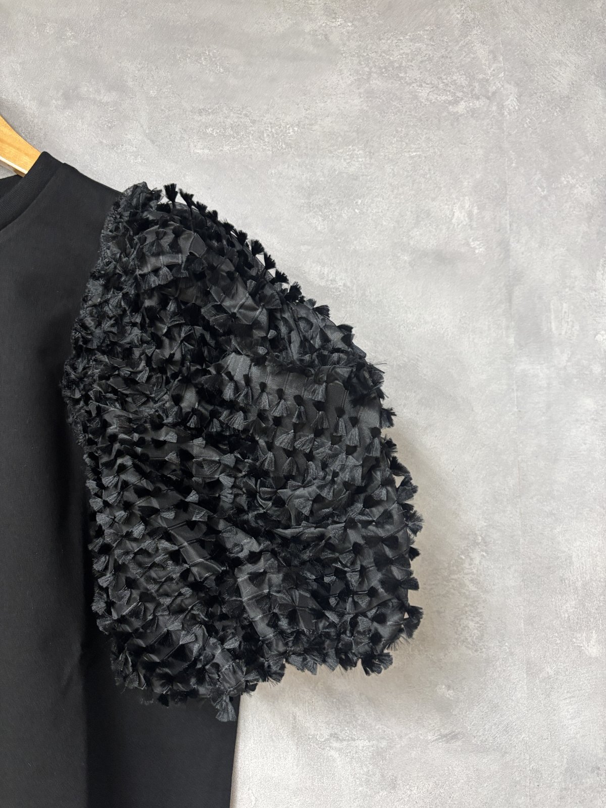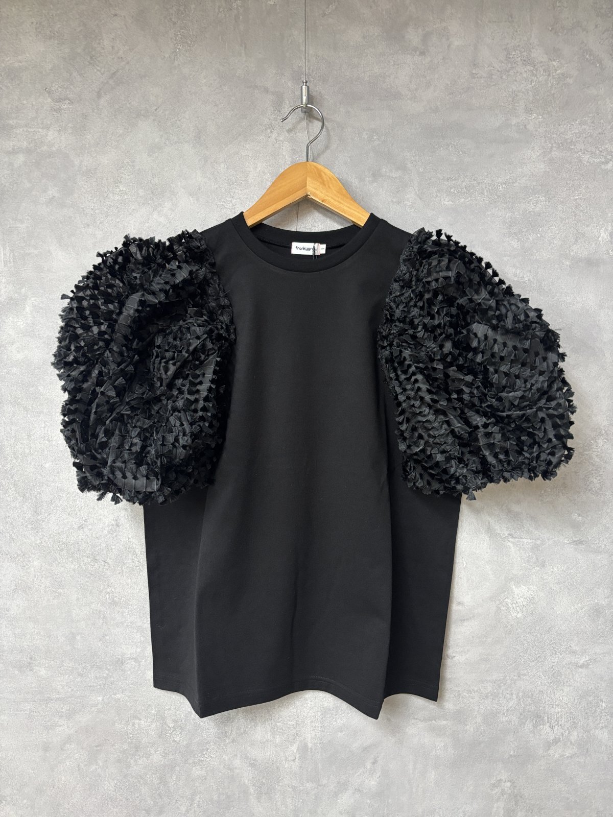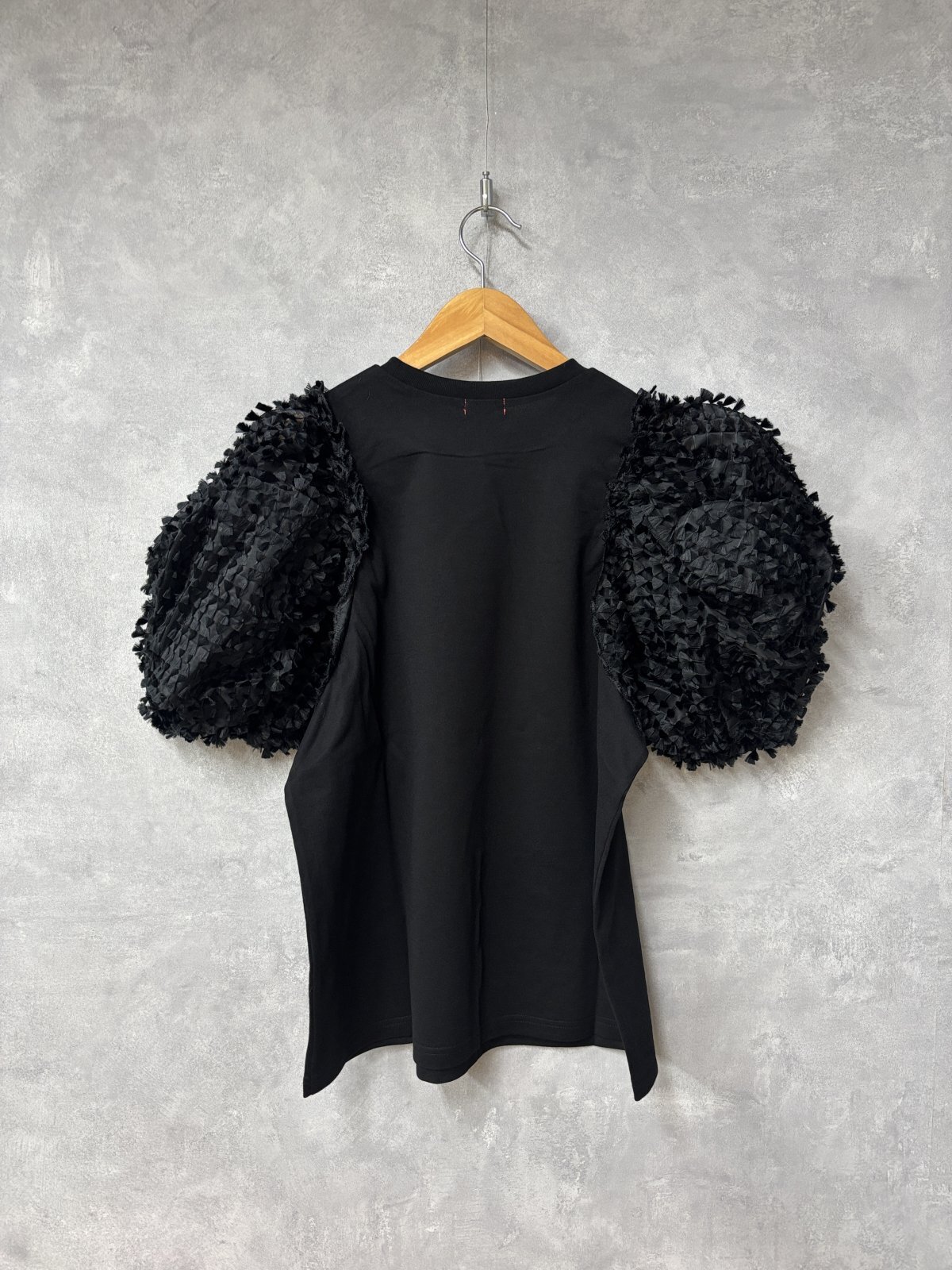 2026春夏 フランキーグロウ RIBBON ORGANDY BUBBLE SLV TEE (おとなサイズ) BLACK-BLACK