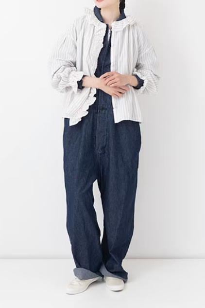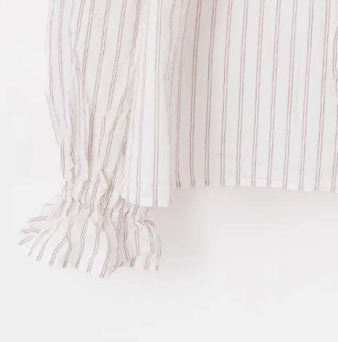 コットンリネンの軽やかなストライプ生地。コットンの柔らかな肌触りにリネンの清涼感をプラスし、さらりとドライな質感に仕上げました。洗うたびに増していく風合いと、天然素材ならではのナチュラルな表情が魅力です。