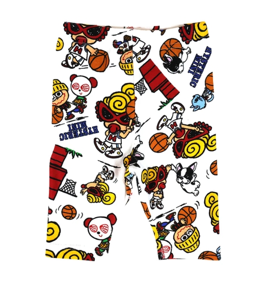アクティブベビーが愛用すること間違いなしな5分丈のレギンスは伸縮性も高いのでおむつを履いたベビーちゃんも簡単に着脱できます。MINIちゃんと仲間たちが楽し気にバスケットボールを楽しむHYSTERIC HOOPS総柄で気分もUP☆ハイカットスニーカーとの相性もGOODな丈感です。